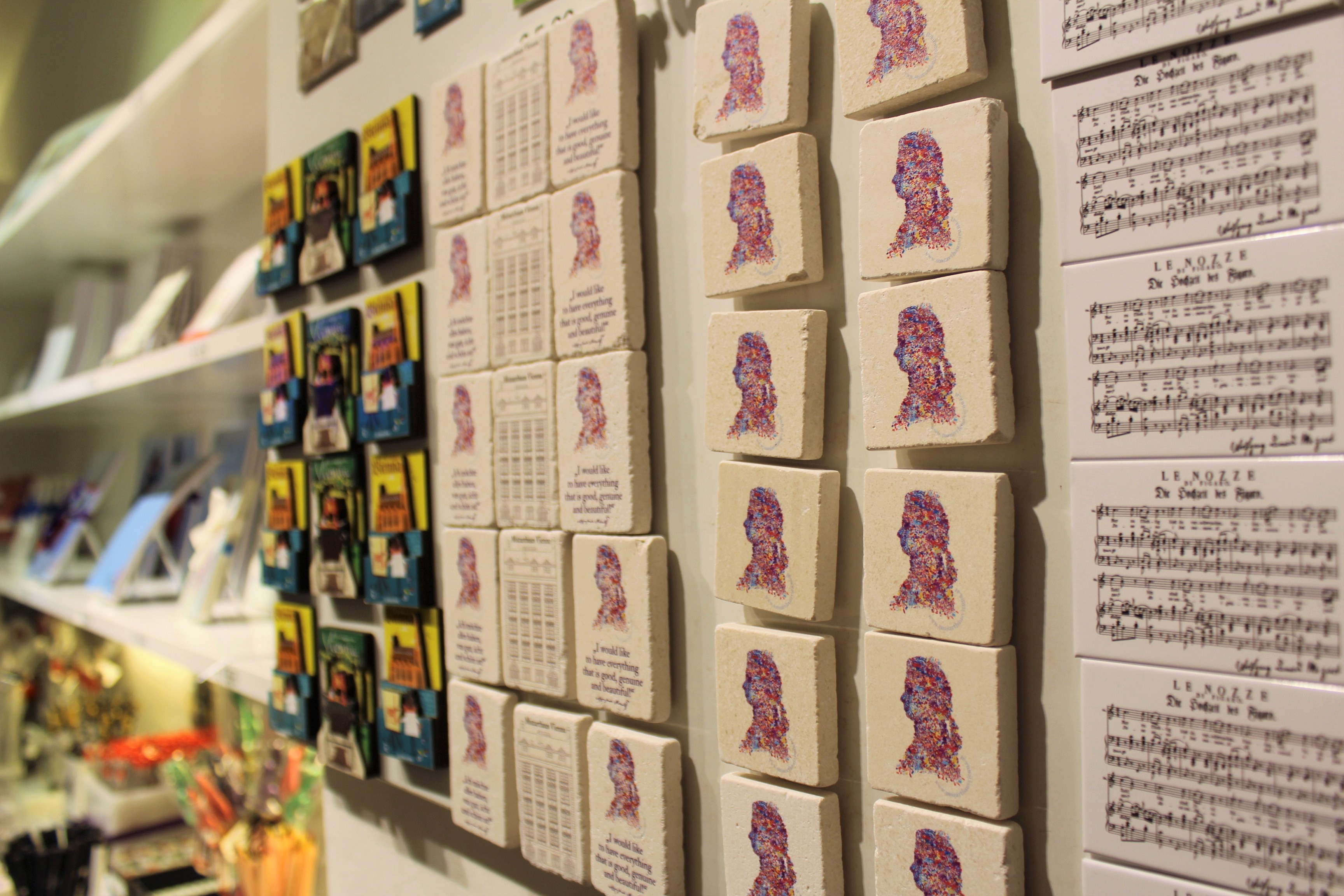 Neben Erinnerungsstücken und Geschenkartikeln finden Sie eine exklusive Auswahl an CDs und DVDs, beides auch mit besonderem Bezug zum Mozarthaus Vienna. Auch wichtige Publikationen zu Mozarts Leben und Werk sowie weitere Fachliteratur und Operntextbücher sind in unserem Museumsshop erhältlich. Ein Kindersortiment mit kindgerechter Mozartliteratur, Spieluhren, T-Shirts und vielem anderen mehr vervollständigt das Sortiment.