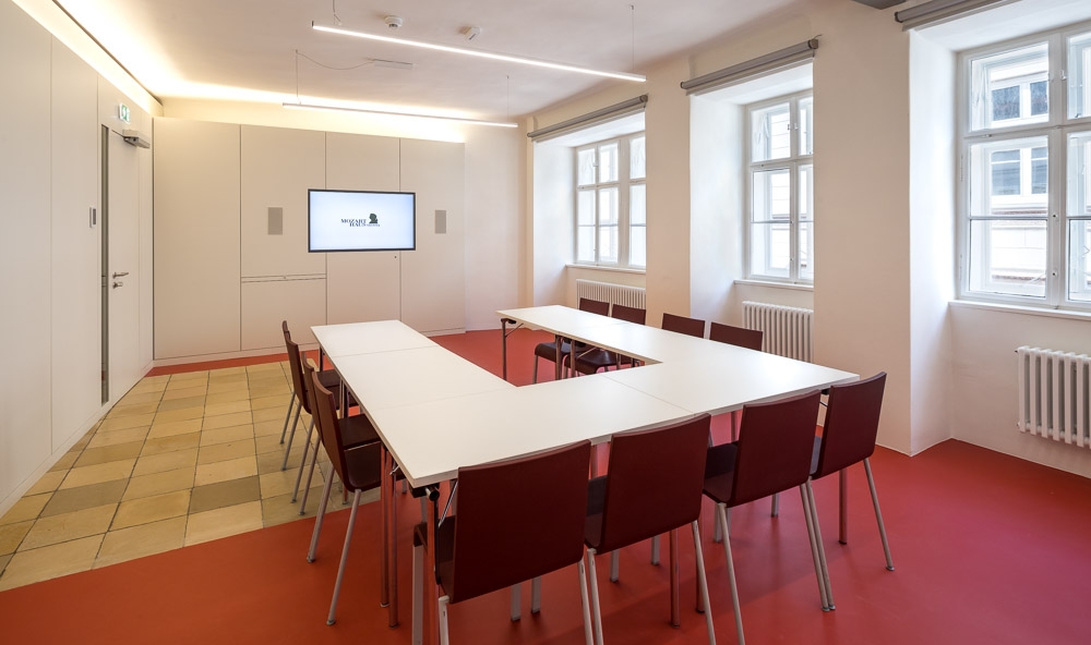 In addition to the concert and event area on the second basement level, the Concert Hall in Mozarthaus Vienna, the museum has light-flooded areas on the 4th floor with a highly attractive combination of historic and modern elements.