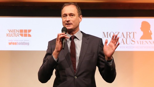 After welcome greetings from Peter Hanke, Director Wien Holding, and Gerhard Vitek, Director Mozarthaus Vienna, Thomas Leibnitz, Director of the Department of Music, gave an introduction to the special exhibition which he curated with his collegue Andrea Harrandt. The aim of this exhibition is to show this process of how people became aware of Mozart’s greatness and make it possible to experience and comprehend the unbroken, indeed increased popularity of his oeuvre after his death on the basis of a variety of aspects.