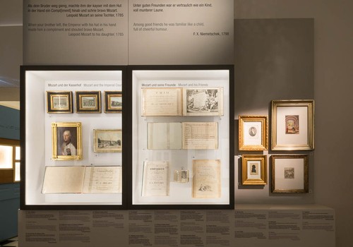 The exhibition featured letters and documents relating to the two subscriptions and the people who supported Mozart’s work. It was shown in a modern artistic setting that gives visitors access in a novel manner to Mozart as a person and to his contemporaries.