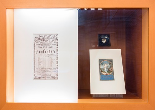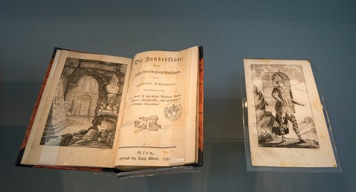 Two engravings adorn the libretto for the premiere of Mozart’s opera The Magic Flute. One shows Emanuel Schikaneder as Papageno, the other a puzzling scene in a dark vaulted room. They reflect the two aspects of the opera, whose relationship is still an enigma today. The exhibition shows the meeting of these two contrasting worlds: the realm of Viennese folk theatre with its fairy tales, magic and mechanical operas, where the actor, singer and theatre director Schikaneder was at home, and the world of Vienna freemasonry with its fascination for Egyptian mysteries, which Mozart knew so well. Early stage sets show how, from around 1815, the setting shifted from a masonic garden with antique buildings to ancient Egypt, completely obscuring the connections between the two aspects of the opera.